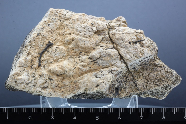 フリル化石の多くは、このようにセクション状態で発見され、表面には血管の通っていたという跡(溝部分)か残されたものも多く存在します。