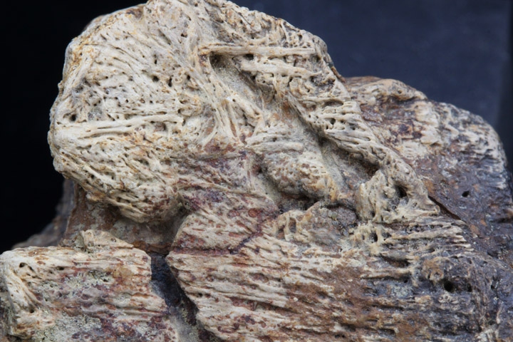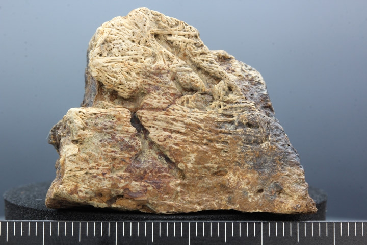 フリル化石の多くは、このようにセクション状態で発見され、表面には血管の通っていたという跡(溝部分)か残されたものも多く存在します。