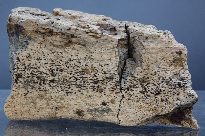 フリル化石の多くは、このようにセクション状態で発見され、表面には血管の通っていたという跡(溝部分)か残されたものも多く存在します。