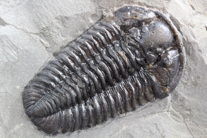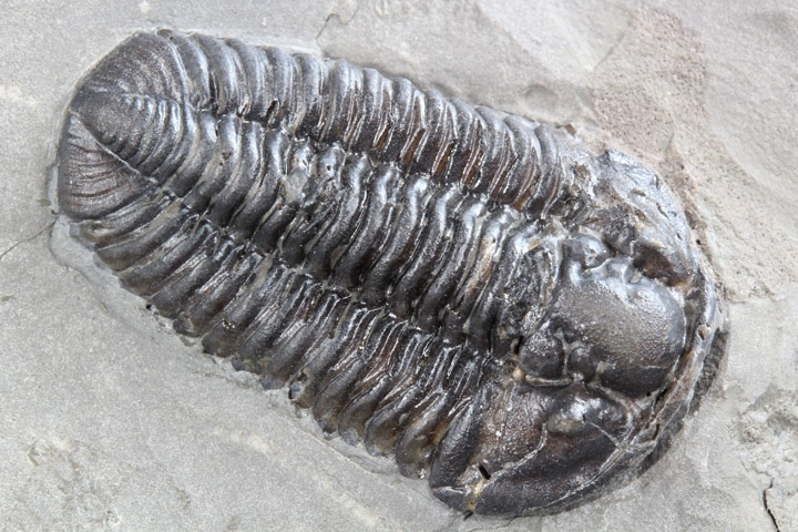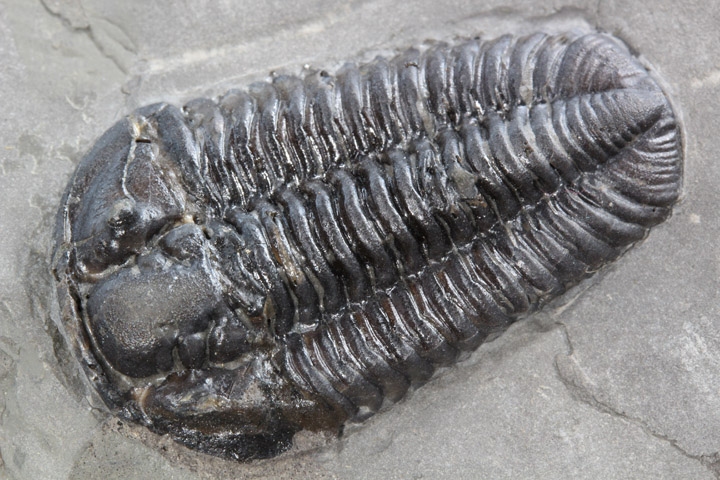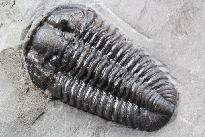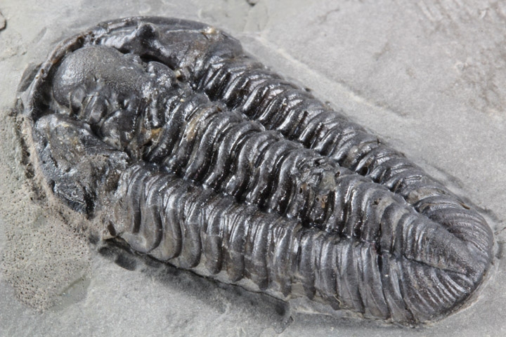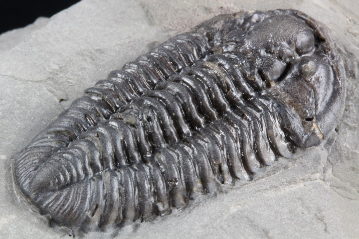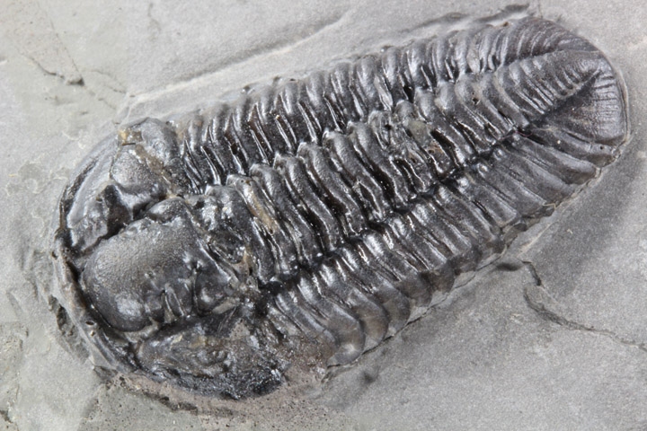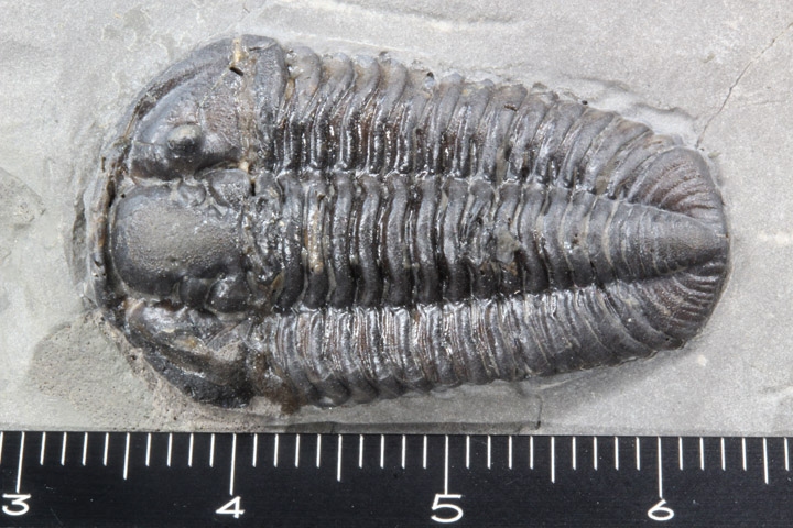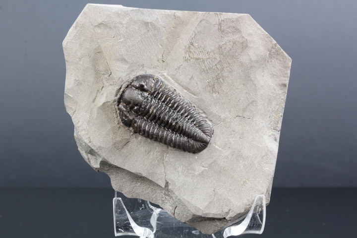 本種はシルル紀後期に生息していた三葉虫で、幅広の頭部と大きな頭鞍部、そして離れた複眼が特徴的です。