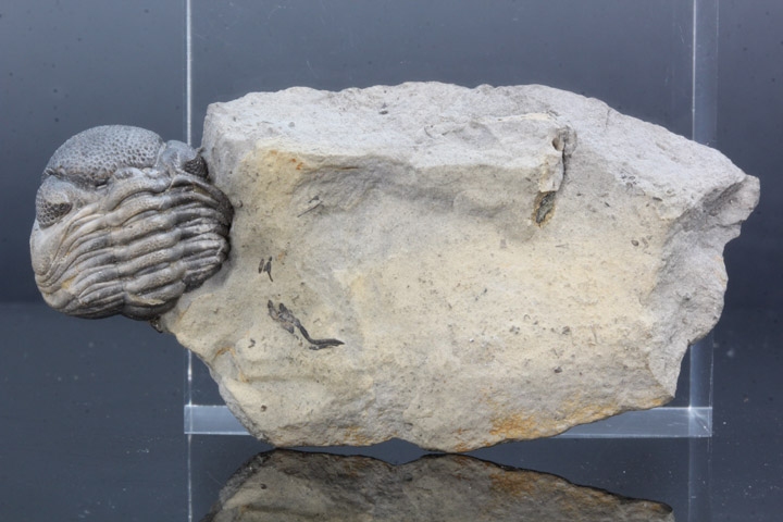 ニューヨーク産ファコプスの異名を持つエルドレドゲオプスの防御姿勢をとった標本です。発掘時そのままの状態でプレップした、ナチュラルなコレクションとしてお楽しみいただけます。