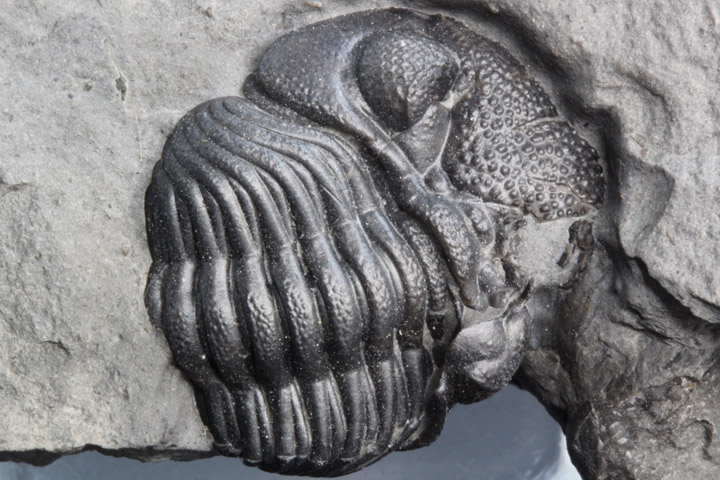 ニューヨーク産ファコプスの異名を持つエルドレドゲオプスの防御姿勢をとった標本です。発掘時そのままの状態でプレップした、ナチュラルなコレクションとしてお楽しみいただけます。