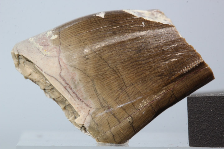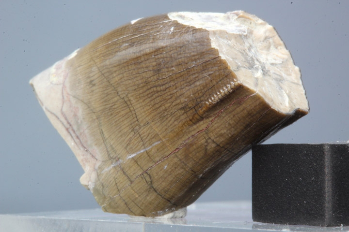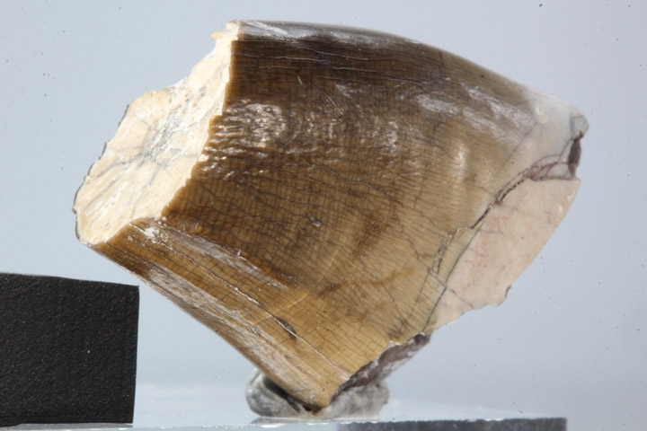 現在は入手不可能となった、モンタナ州のインディアン居住区内の発掘地から見つかったアルバートサウルスの歯化石です。
